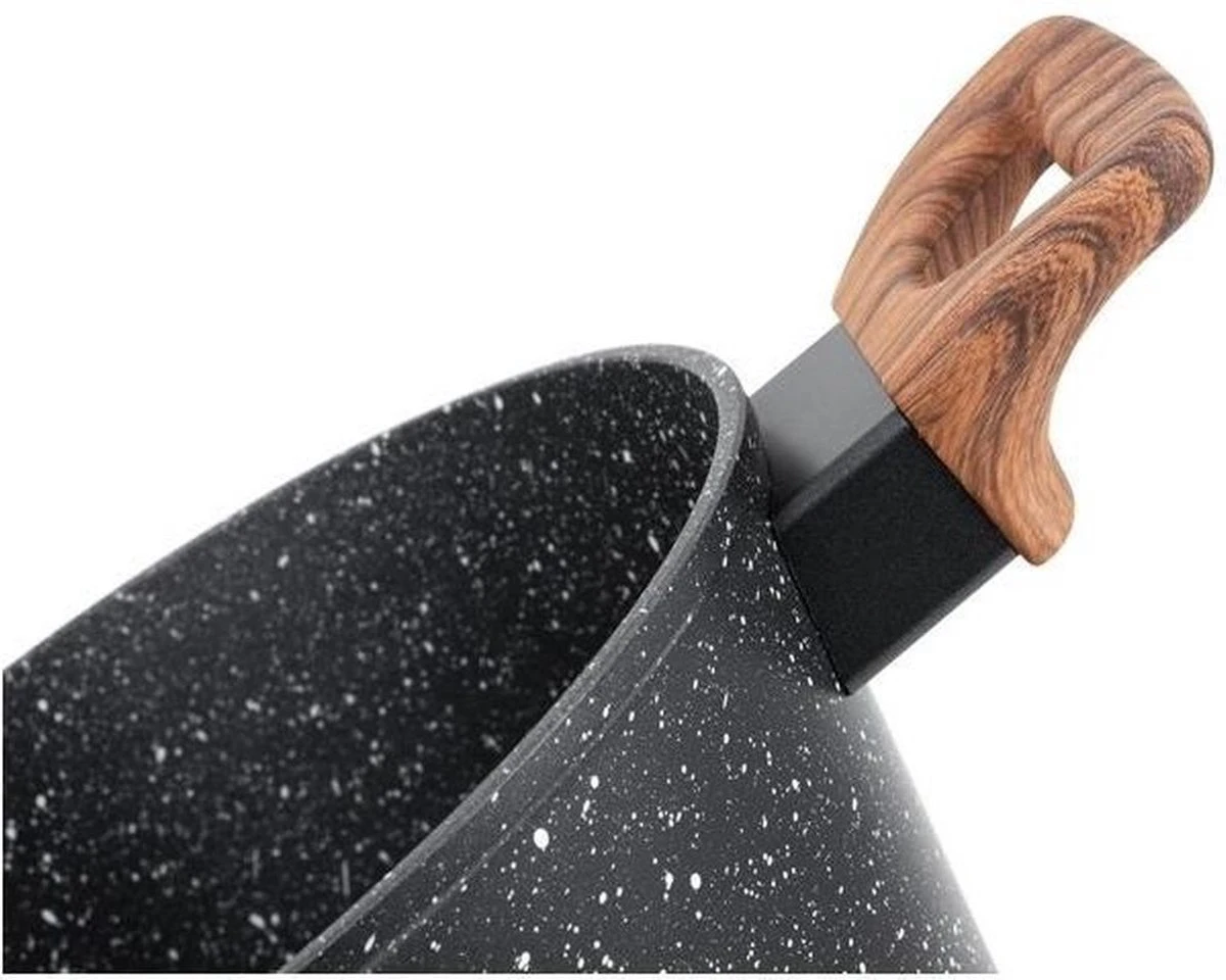 Deze prachtige pannenset van Edënbërg wordt geproduceerd onder de strengste Duitse normen en met het beste aluminium. De bodem is bedekt met maar liefst 3 lagen marmer met een mooie zwarte binnenkant die niet verkleurd. Dankzij de dikke bodem zijn de pannen zeer duurzaam en wordt het eten gelijkmatig verwarmd. De pannen kunnen worden gebruik op een kookplaat en ook op een fornuis met inductie.