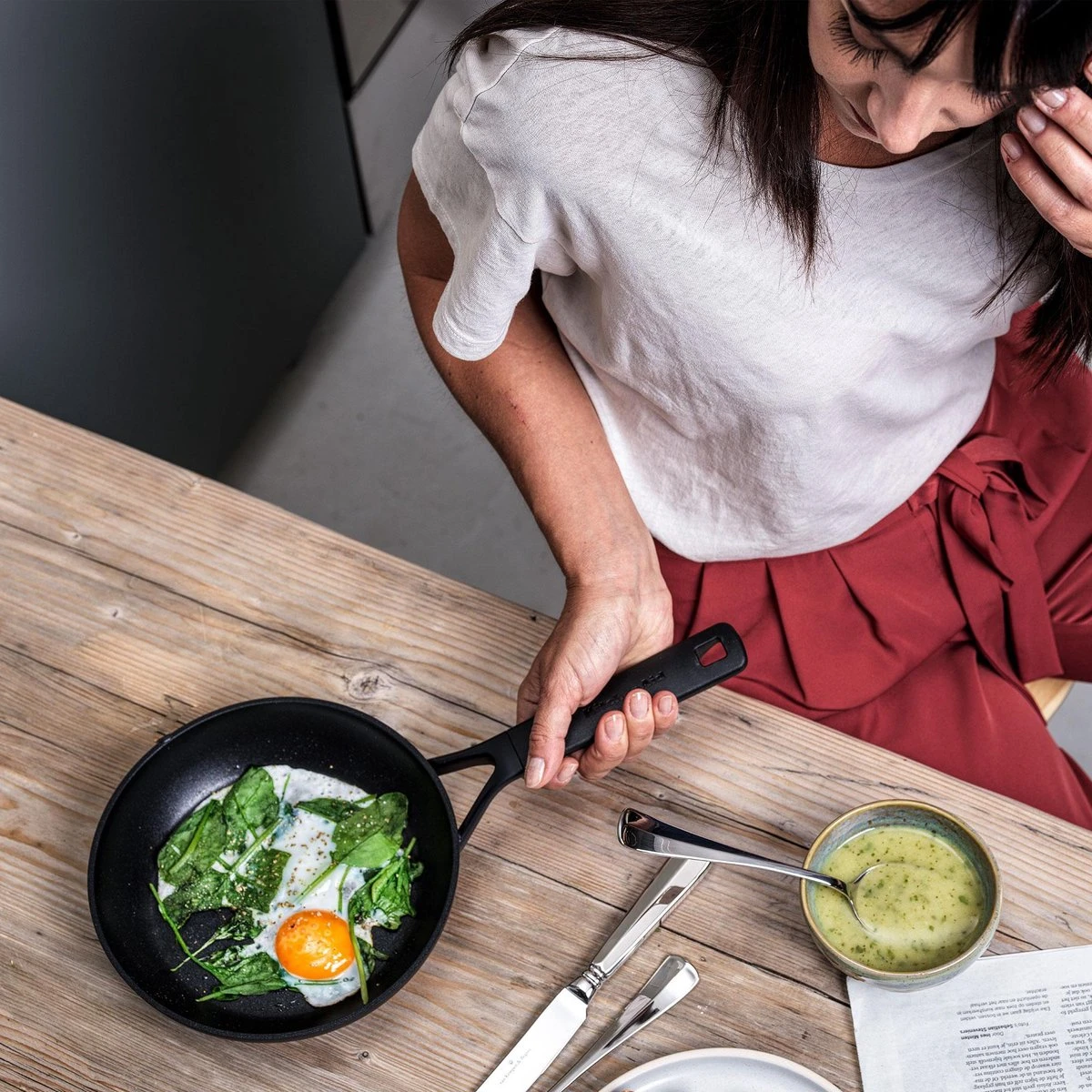 Het tijdloze design van de pannen is prachtig en bovendien heel gebruiksvriendelijk. Dankzij handige snufjes zoals een naadloze binnenkant, koelblijvende handgrepen en een stapelbaar design kun jij je creativiteit de vrije loop geven. Met deze collectie tover je elke dag opnieuw heerlijke gerechten op tafel!