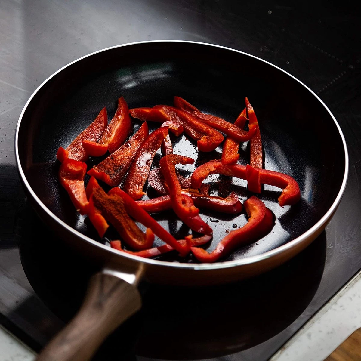 Onze koekenpannenset voor koekenpannen bevat een pan van 24 cm. Een perfecte essentiële pan om een ​​breed scala aan gerechten te bakken en sauteren, van eenvoudige roereieren tot een volledige dinermaaltijd. Deze koekenpan met antiaanbaklaag wordt uw favoriete kookset in de keuken!