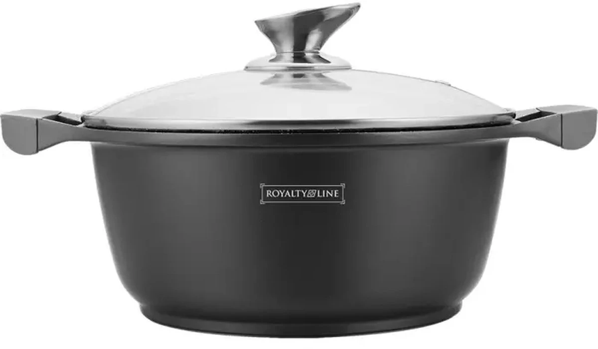 Royalty Line – Marble Soep/braadpan – Met Glazen Deksel Zwart – 20 CM. RL-BS20ML