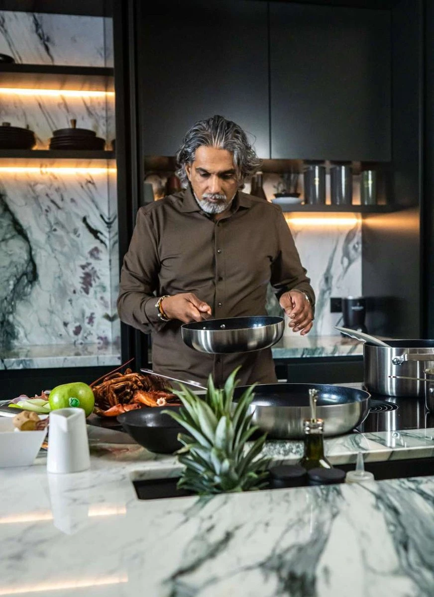 Nog niet bekend met Soenil Bahadoer? Dan nemen we je graag even mee. Soenil is opgegroeid in een Surinaams-Hindoestaanse cultuur en met familieleden die hele dagen in de keuken staan om de meest smakelijke gerechten te bereiden. Hier is zijn passie voor koken mee begonnen. Soenil is chefkok/eigenaar van restaurant de Lindenhof in Nuenen, waar de pannen zijn rechterhand zijn. Bij het bereiden van lekkere en gezonde ingrediënten, is er niks belangrijker dan het gebruik van goede materialen. Soenil combineert de smaken uit zijn geboorteland Suriname met de klassiek Franse keuken waarin hij is opgeleid. Hij werkt met veel verschillende smaken en specerijen uit alle windstreken. Daarom is Soenil samen met ISENVI op zoek gegaan om een pannenset te ontwikkelen die deze smaken tot zijn recht laat komen.