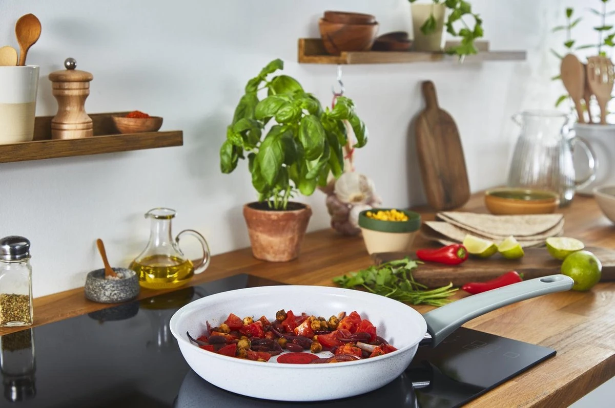 Gezonde, natuurlijke maaltijden vereisen bijpassende kookgerei. Met Tefal Natural Chef weet je zeker dat je pannen het milieu op de eerste plaats zetten. De body van 100% gerecycled aluminium is uiterst milieuvriendelijk, vereist tot 90% minder energie om te produceren en vermindert de voetafdruk van het product met maar liefst 60%. Een tastbaar gebaar om het milieu te helpen. Het assortiment is voorzien van een veilige, krasbestendige keramische coating die heerlijke resultaten belooft, knapperig tot in de perfectie. Ideaal voor het bereiden van een breed scala aan verse, natuurlijke ingrediënten. Dankzij de Thermo-Signal™ warmte-indicator weet je wanneer de pan de juiste temperatuur heeft bereikt, waardoor je gegarandeerd perfecte bakresultaten behaald.