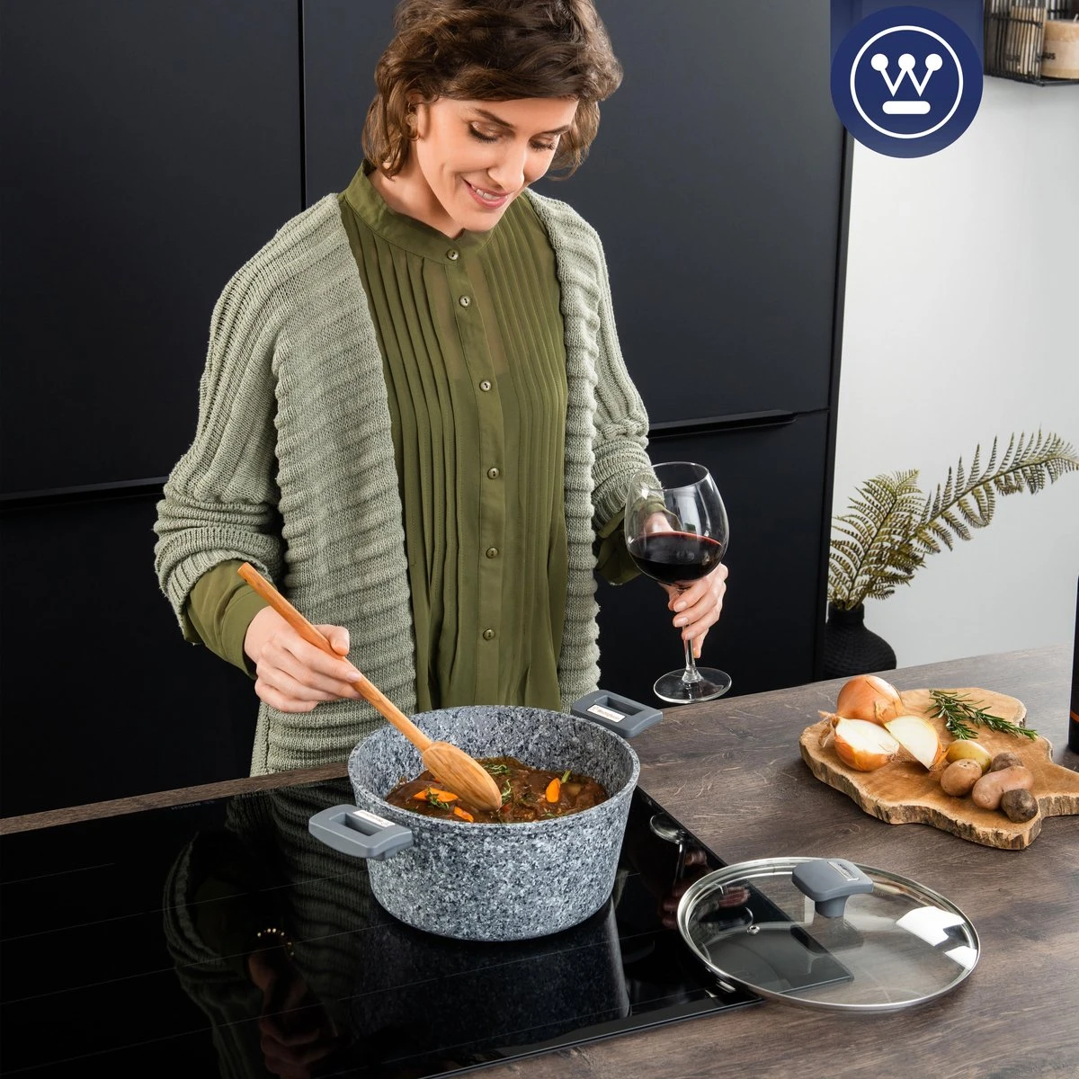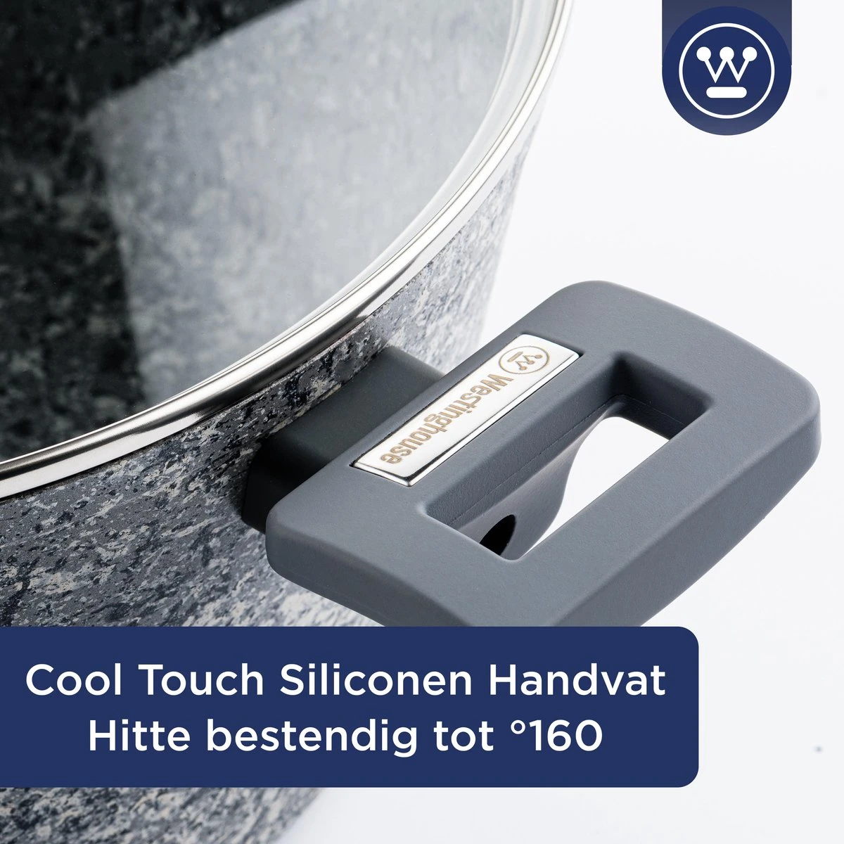 Westinghouse Kookpan/Braadpan Inductie – Ø 28 Cm – Grijs Graniet – Met Deksel – PFOA Vrij